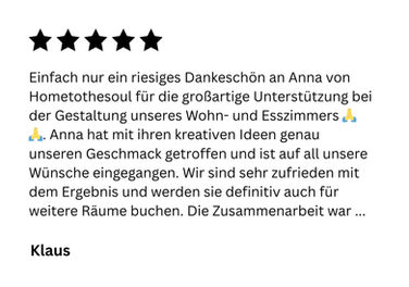 Ich gestalte Räume, die deine Persönlichkeit widerspiegeln. Von der ersten Idee über 3D-Visualisierungen und Grundrissplanung bis zur finalen Umsetzung biete ich dir individuelle Wohnkonzepte an. Alles begleitet durch persönliche Beratung Online oder vor Ort – für ein Zuhause, das genau zu dir passt.